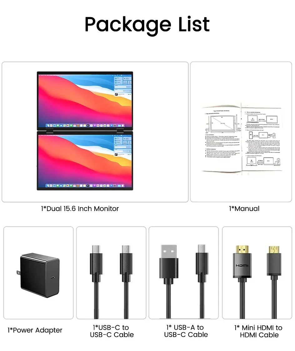 15.6 Inch Dual Touch Screen Portable Monitor 1080P FHD With 360° Flip External Screen For PC Laptop Mac Phone Xbox PS4/5 Switch