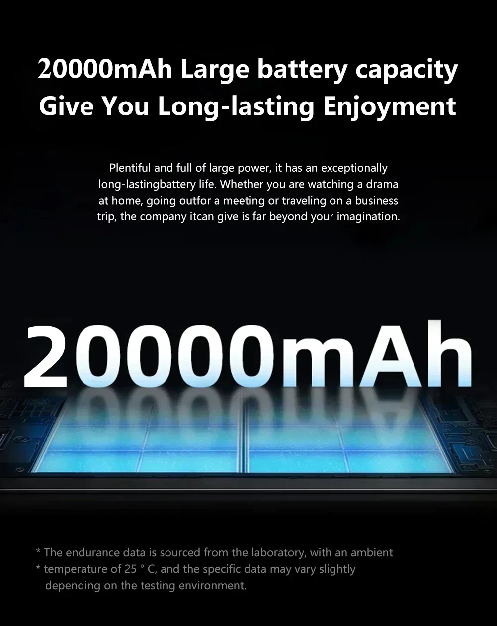 Battery: 20000mAh High Density Lithium-ion battery