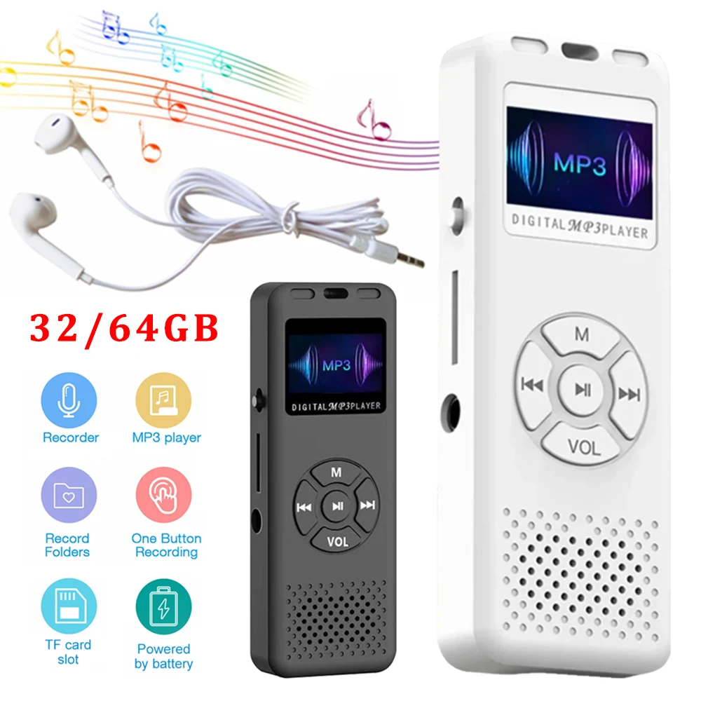 32/64GB Digital Voice Recorder MP3 Player Mini Sound Audio Recorder Professional Recording Dictaphone Built-in Speaker FM Radio