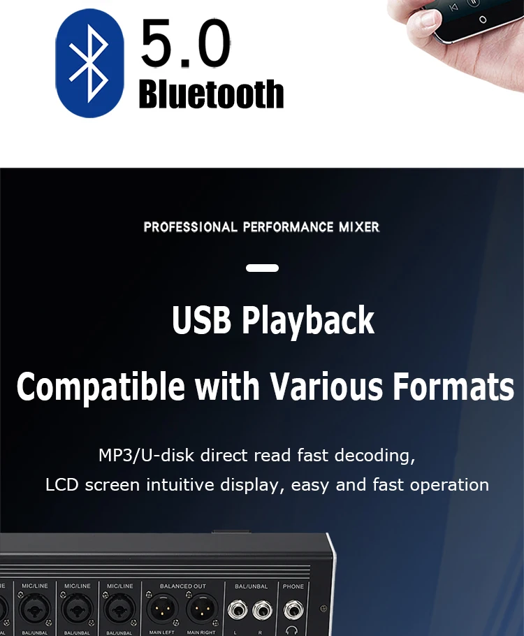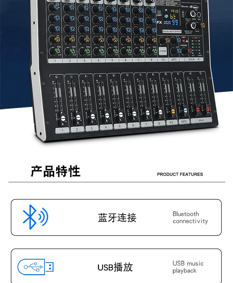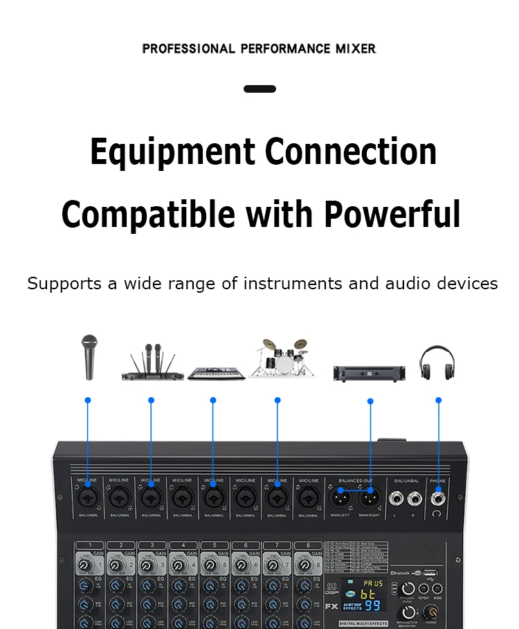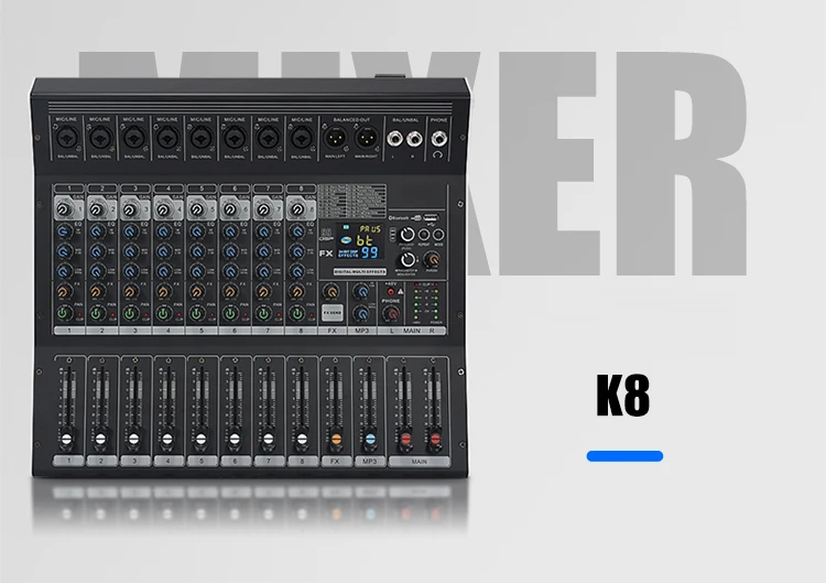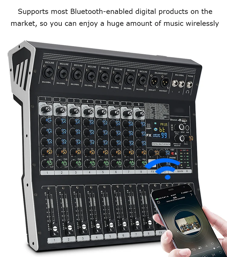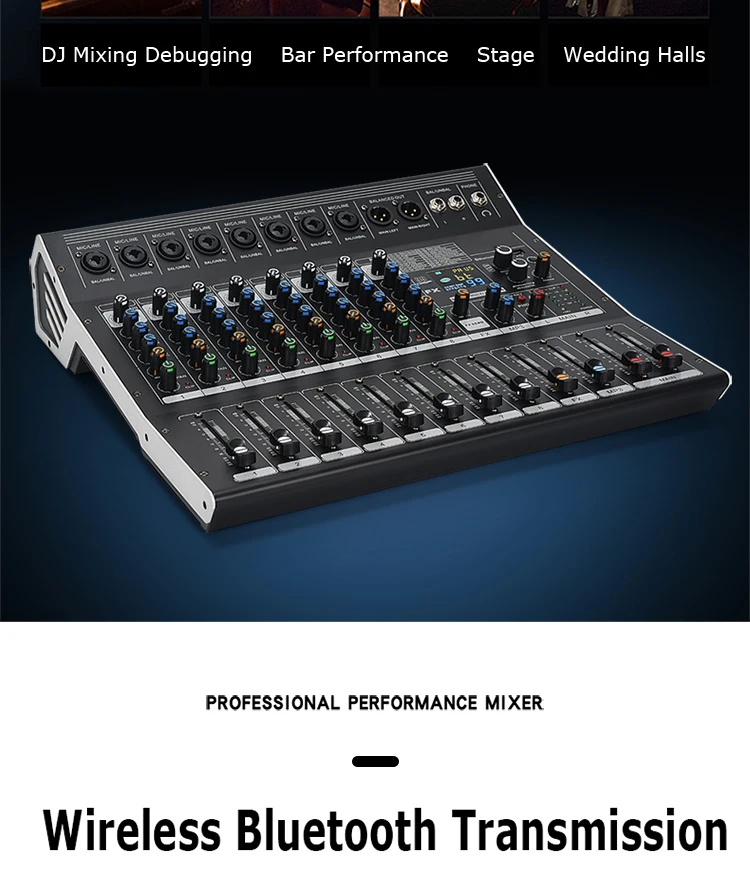 8/12 Channel Digital Mixer Audio Console 100 DSP Effects Bluetooth USB MP3 DJ Reverberation Sound Mixing Console