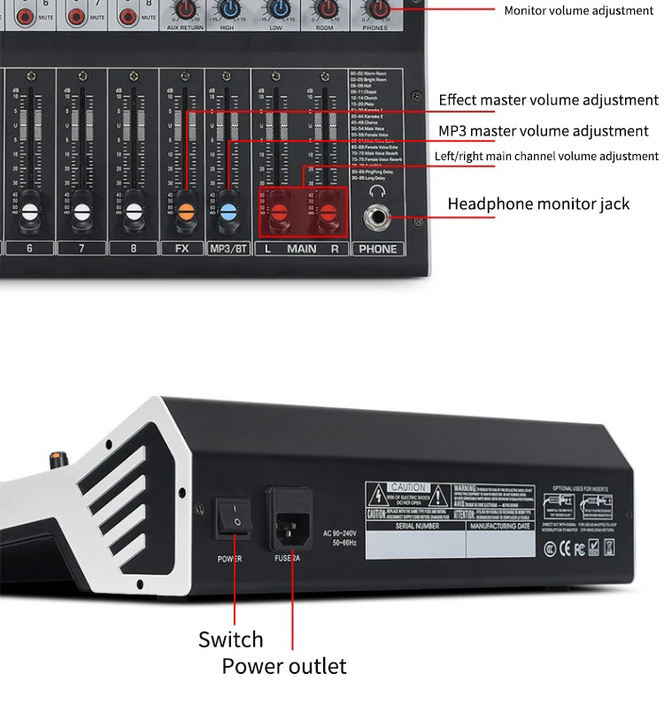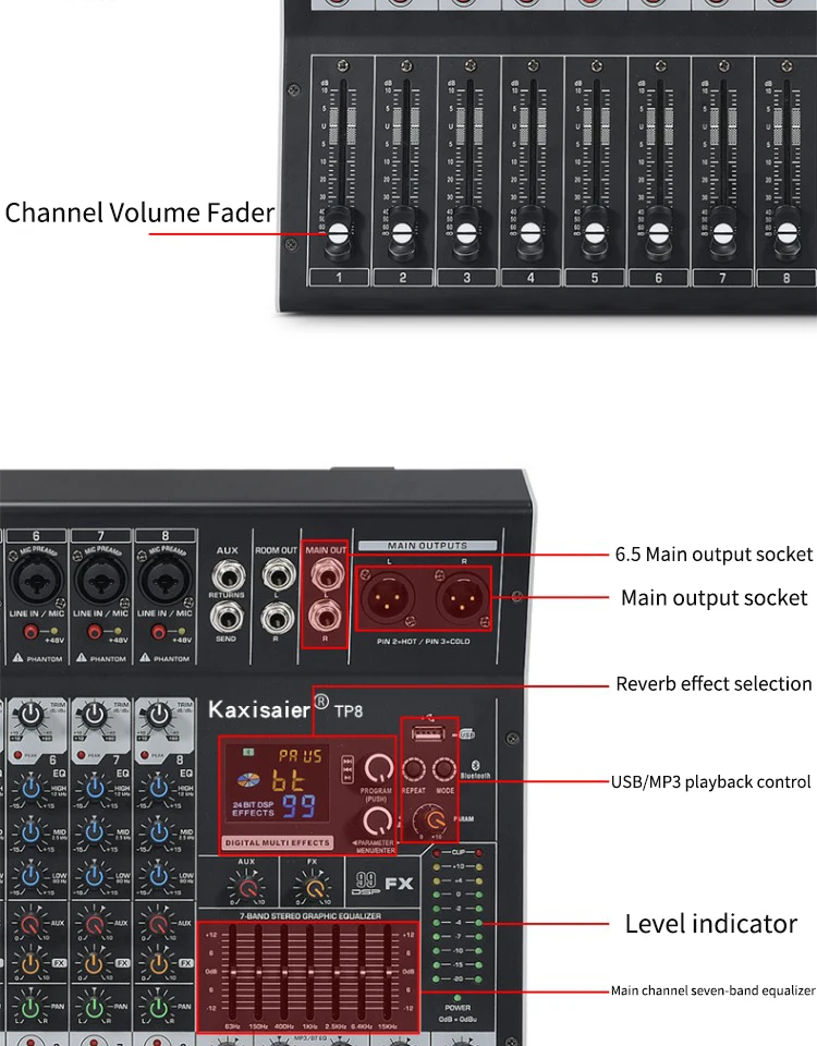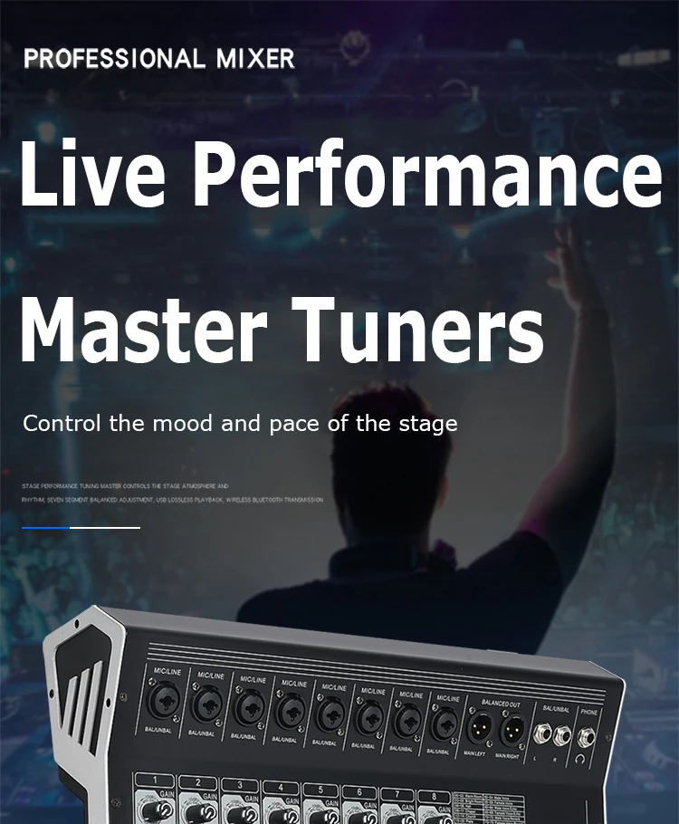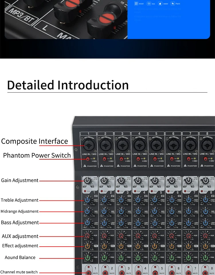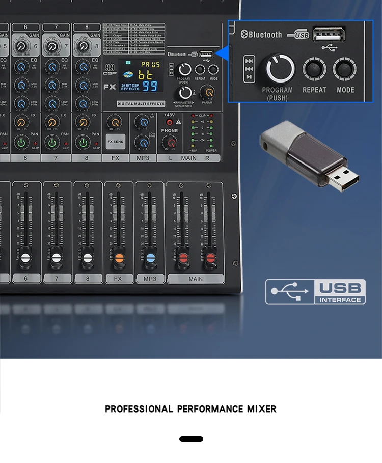 8/12 Channel Digital Mixer Audio Console 100 DSP Effects Bluetooth USB MP3 DJ Reverberation Sound Mixing Console