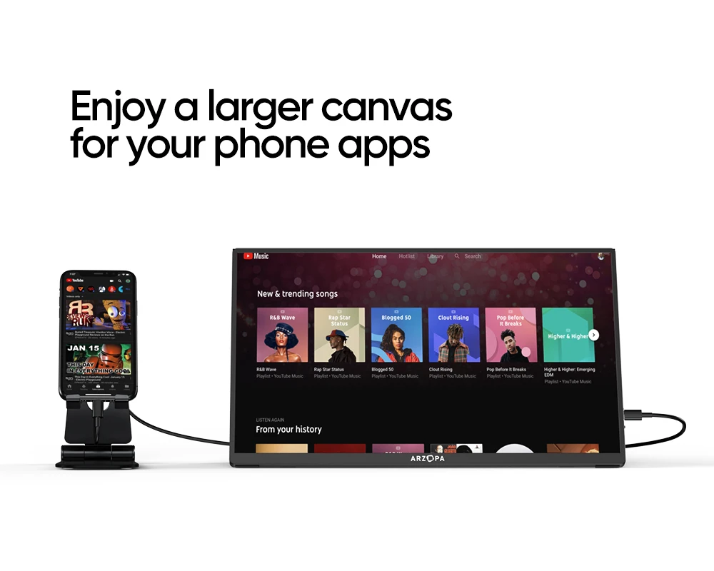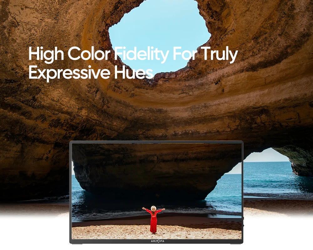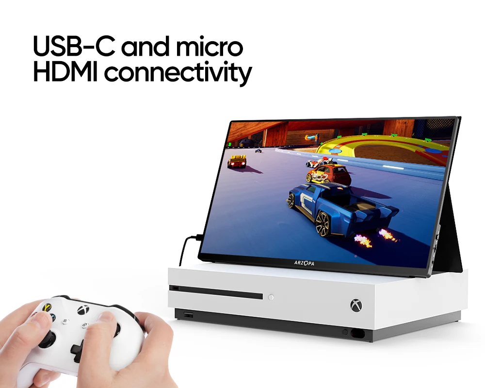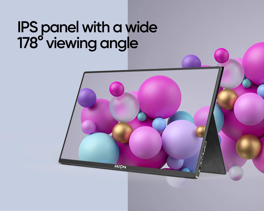 This ARZOPA monitor features USB-C video and power delivery. Watch high resolution video from your smartphone or laptop.