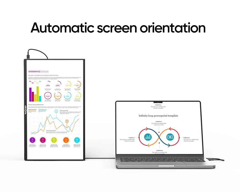 Landscape mode is ideal for presentations and Excel sheets, while Portrait mode gives you a perfect view of items such as codes, documents, books or mobile websites.