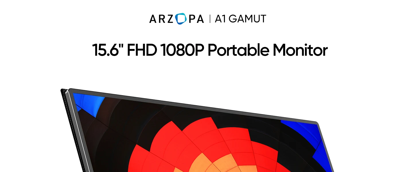 Arzopa 15.6 Ultra Slim Portable Monitor FHD 1080P External Display with Dual Speakers Second Screen for Laptop PC Phone Switch