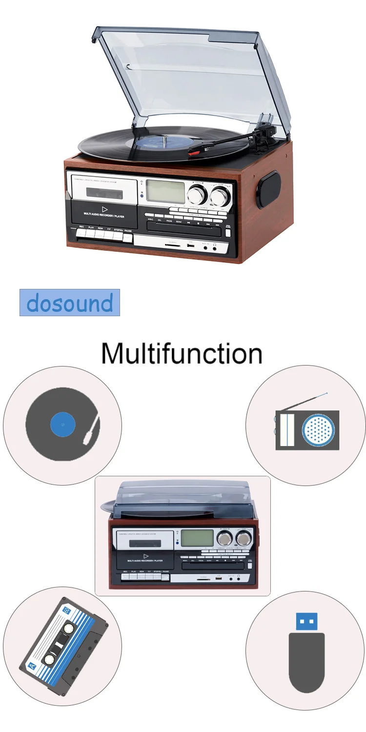 Classic Vintage Design 6 in 1 audio Turntable record player& vinyl turntable LP& Gramophone with PC Link/3 Speed LP